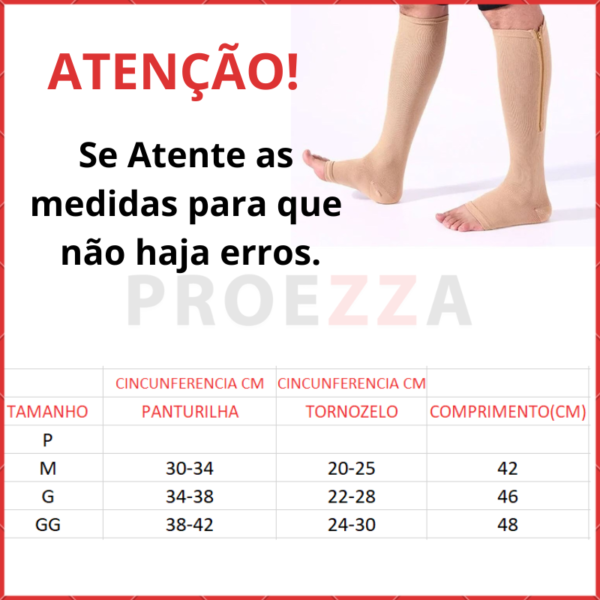 Com sua tecnologia de compressão graduada e fácil aplicação com zíper lateral, essa meia é a solução perfeita para o seu bem-estar.